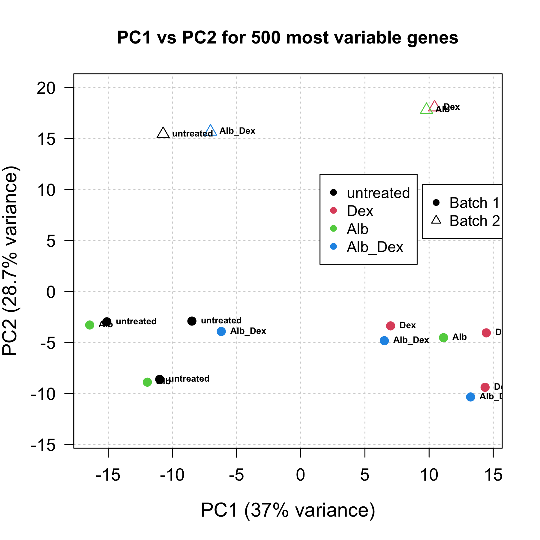 For this workshop we will be using a published dataset as part of a study to determine the effects of Glucocorticoid drugs of human airway smooth muscle cells (published in PLoS One). In the study, four cell lines were treated with either a control vehicle (untreated), dexamethasone (dex), albuterol (alb), or both dexamethasone and albuterol (co-treated) for 18 hours before transcriptomes were extracted.